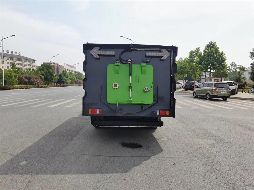 高效洗掃車利用高壓水流及傾斜掃刷將垃圾掃**吸盤前面,在風機產生的負壓作業下,風流在閉合的回路中將垃圾吸入垃圾箱中貯存,整個作業過程均是物理原理,不會產生化學廢料或垃圾外泄對環境的二次污染,同時,后噴霧的降塵有效的降低了空氣中粉塵濃度,解決粉塵污染問題。