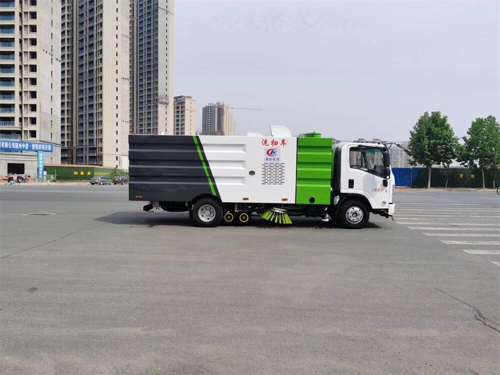 洗掃潔凈度高,該車型齊全的功能解決不同路面環境的作業,一次作業洗掃效率達98%以上,前沖功能、洗掃功能、路沿清洗功能、后噴霧功能、低壓沖洗功能以及采用的吸盤+左右側噴桿結構,路面、溝縫、彎道處、路沿上等處的灰塵、垃圾均能處理干凈,確保環境干凈、整潔。