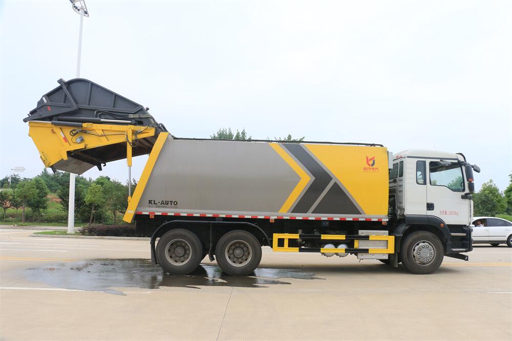 上裝配置:垃圾箱容積:20方,新款平面弧形廂體,廂體材料為武鋼優(yōu)質(zhì)碳鋼,PLC一鍵操作**,手電一體操作模式,兩側(cè)雙電控,帶駕駛室內(nèi)操作,底板支撐加強(qiáng),雙向壓縮,開(kāi)放式易清潔污水箱。壓縮式垃圾車(chē)采用機(jī)電液一體化技術(shù),借助機(jī)、電、液聯(lián)合自動(dòng)**系統(tǒng)、電腦**、手動(dòng)操作系統(tǒng),通過(guò)填裝器和推鏟等專(zhuān)用裝置,實(shí)現(xiàn)垃圾倒入、壓碎或壓扁、強(qiáng)力裝填,把垃圾擠入車(chē)廂并壓實(shí)和推卸,污水全部進(jìn)入污水廂,解決了垃圾運(yùn)輸過(guò)程中的二次污染的問(wèn)題。壓縮式垃圾車(chē)具有自動(dòng)反復(fù)壓縮以及蠕動(dòng)壓縮功能,壓縮比高、密封性好、裝載量大﹑操作方便、環(huán)保性好﹑整車(chē)?yán)霉β矢叩葍?yōu)點(diǎn)。作業(yè)自動(dòng)化,垃圾收集方式簡(jiǎn)便、高效。后翻轉(zhuǎn)機(jī)構(gòu)選裝:1、掛塑料桶式翻轉(zhuǎn)機(jī)構(gòu);2、掛鐵桶式翻轉(zhuǎn)機(jī)構(gòu);3、擺臂式翻轉(zhuǎn)機(jī)構(gòu); 4、簸箕斗式翻轉(zhuǎn)機(jī)構(gòu)。