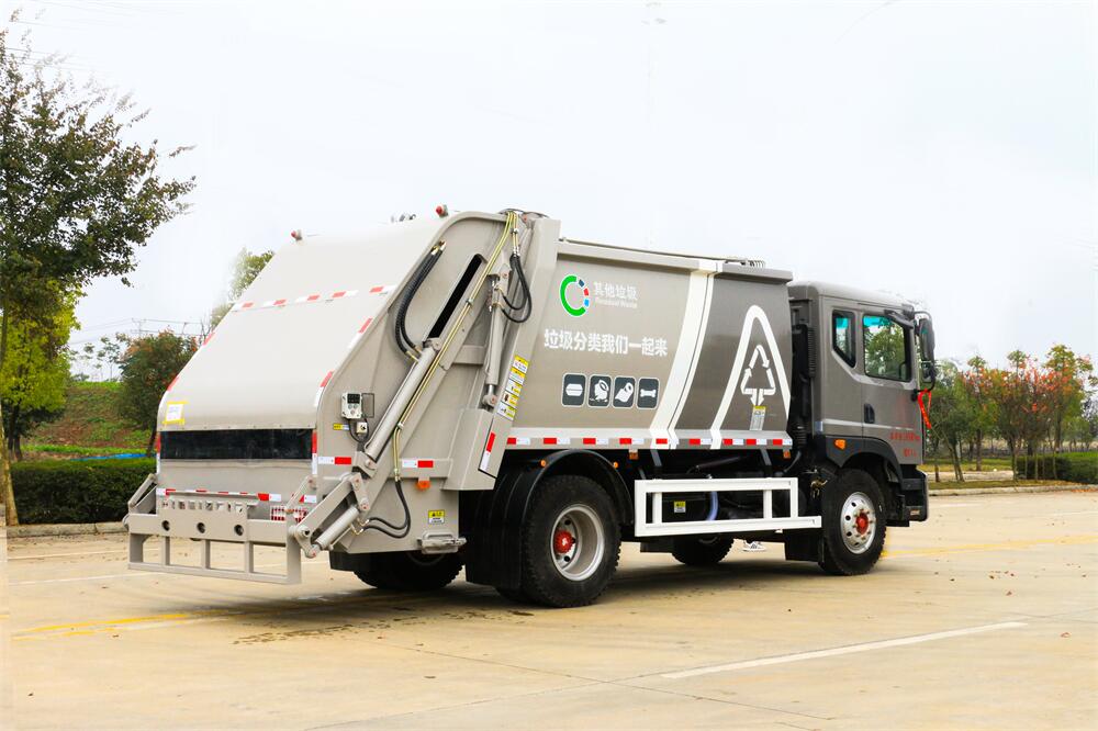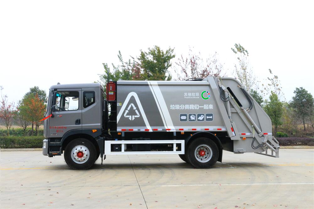 上裝配置:垃圾箱容積:12方,新款平面弧形廂體,廂體材料為武鋼優(yōu)質(zhì)碳鋼,PLC一鍵操作**,手電一體操作模式,兩側(cè)雙電控,帶駕駛室內(nèi)操作,底板支撐加強(qiáng),雙向壓縮,開放式易清潔污水箱。壓縮式垃圾車采用機(jī)電液一體化技術(shù),借助機(jī)、電、液聯(lián)合自動(dòng)**系統(tǒng)、電腦**、手動(dòng)操作系統(tǒng),通過填裝器和推鏟等專用裝置,實(shí)現(xiàn)垃圾倒入、壓碎或壓扁、強(qiáng)力裝填,把垃圾擠入車廂并壓實(shí)和推卸,污水全部進(jìn)入污水廂,解決了垃圾運(yùn)輸過程中的二次污染的問題。壓縮式垃圾車具有自動(dòng)反復(fù)壓縮以及蠕動(dòng)壓縮功能,壓縮比高、密封性好、裝載量大﹑操作方便、環(huán)保性好﹑整車?yán)霉β矢叩葍?yōu)點(diǎn)。作業(yè)自動(dòng)化,垃圾收集方式簡(jiǎn)便、高效。后翻轉(zhuǎn)機(jī)構(gòu)選裝:1、掛塑料桶式翻轉(zhuǎn)機(jī)構(gòu);2、掛鐵桶式翻轉(zhuǎn)機(jī)構(gòu);3、擺臂式翻轉(zhuǎn)機(jī)構(gòu); 4、簸箕斗式翻轉(zhuǎn)機(jī)構(gòu)。