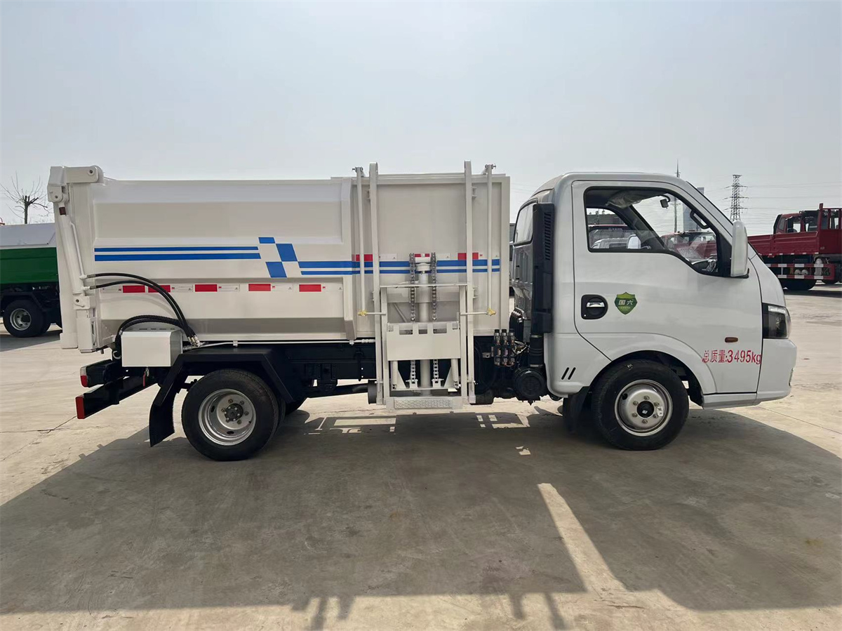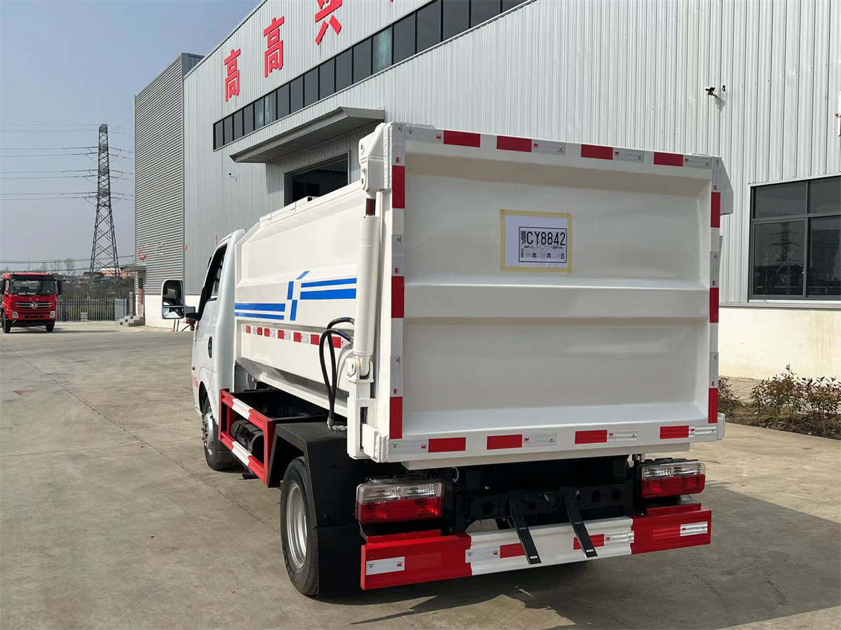 4方掛桶垃圾車-東風途逸藍牌側裝壓縮掛桶自裝式垃圾車