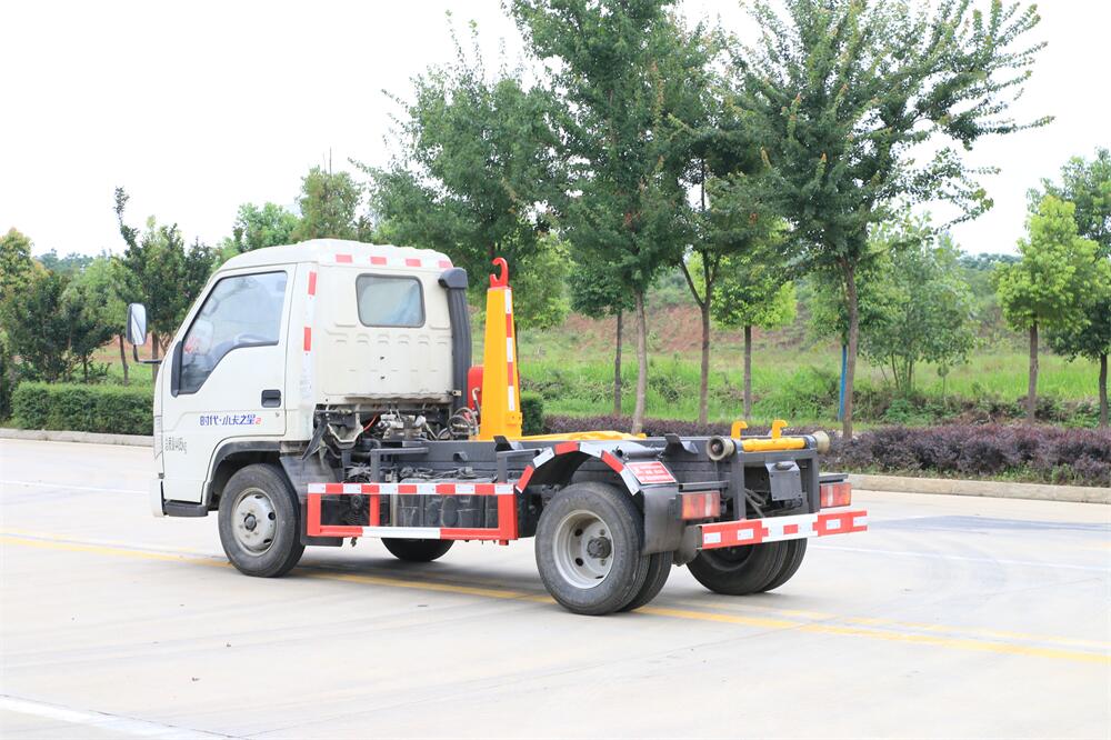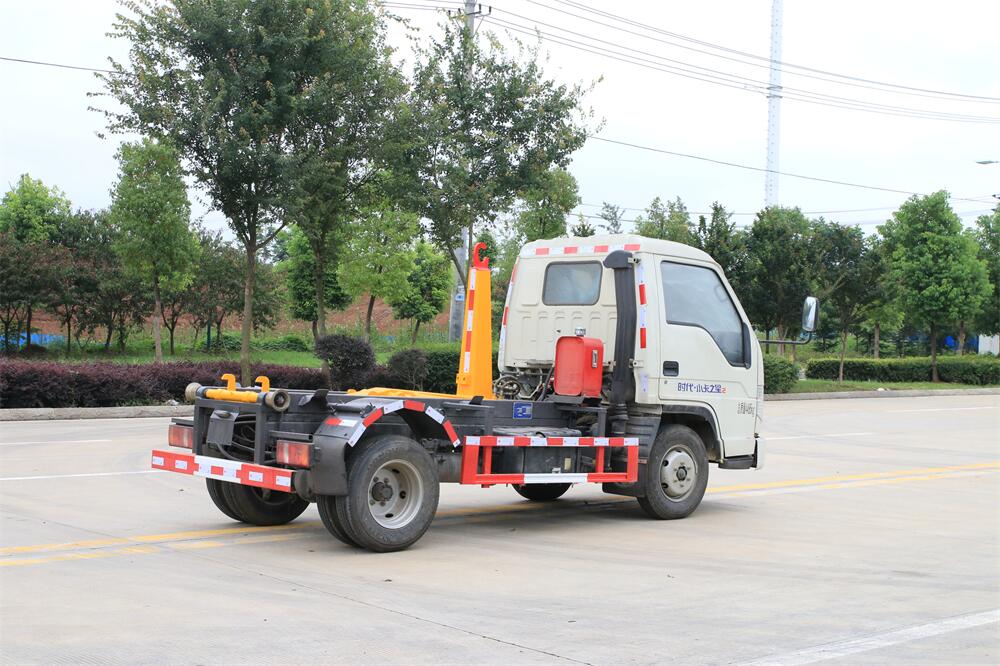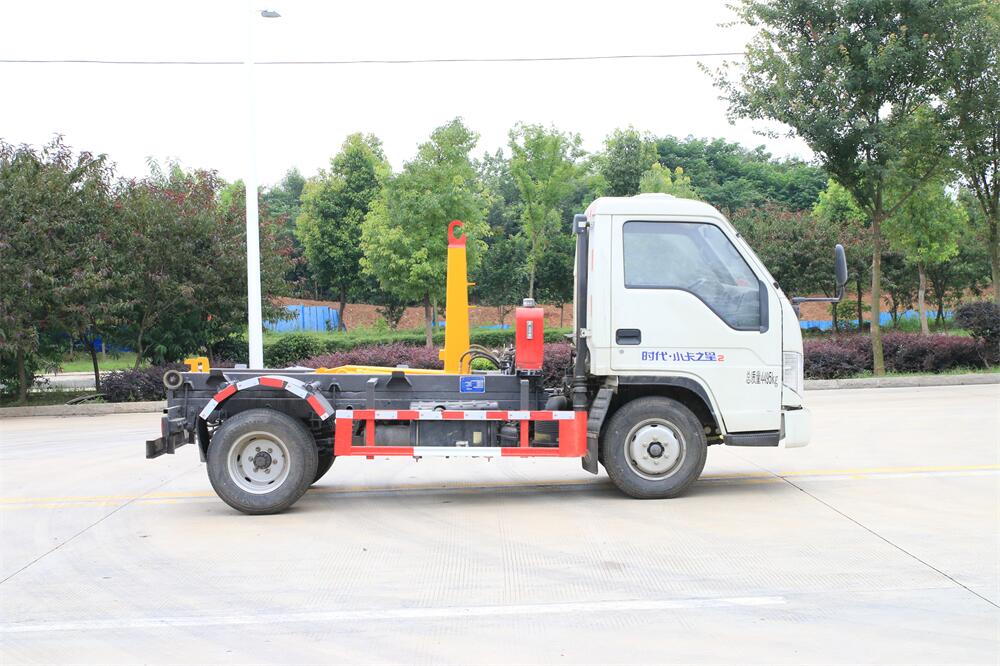 勾臂式垃圾車(車廂可卸式垃圾車)介紹: 車廂可卸式垃圾車又叫拉臂式垃圾車,是一種采用高新設計可伸縮的鉤臂,實現垃圾廂的二次吊裝,自吊上放下,可自行傾倒垃圾的環衛設備。 拉臂式垃圾車結構簡單,操作穩定方便,裝卸效率高,機械化程度高,節省人力。鉤臂垃圾車一車可帶多個垃圾廂,在裝卸的運輸過程中可有效地避免二次污染。 拉臂垃圾車采用高新設計可擺動的鉤臂,垃圾箱由框架、開啟油缸、滑輪、后門和若干加強框架與鋼板焊接而成。調換貨廂快捷方便,貨廂上帶蓋(倒垃圾時可翻開),鉤臂垃圾車垃圾廂體可選用碳鋼、不銹鋼材質、內部采取環氧樹脂防腐處理,改裝部分與原車底盤為可分離式,維修方便且保持了原車的機動性及行駛性能。