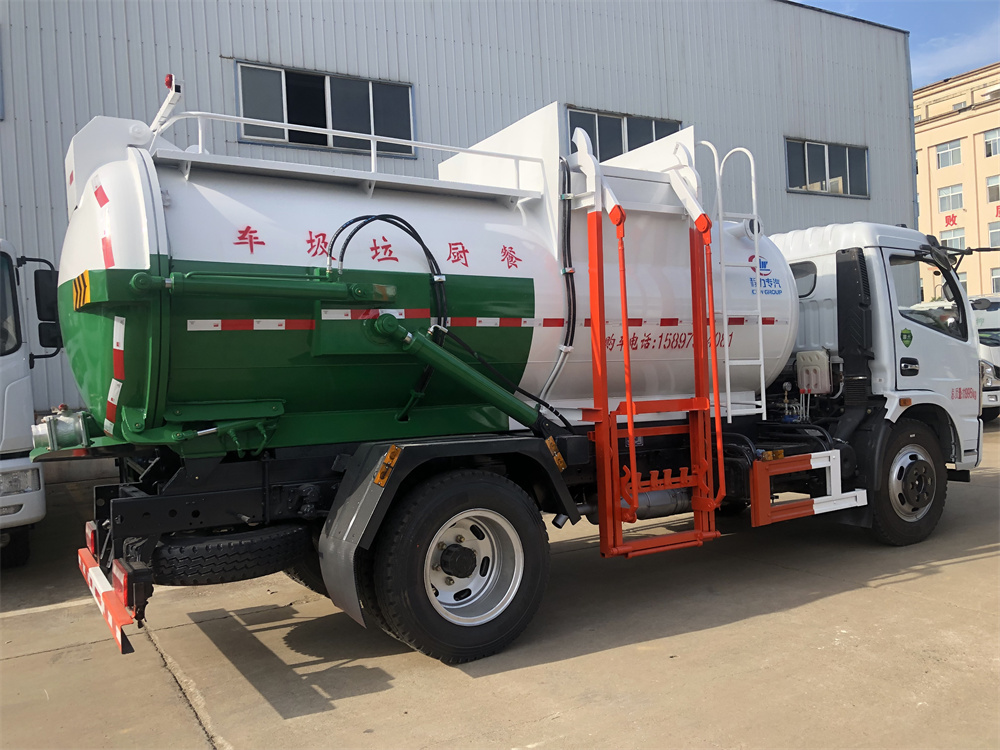 上裝配置:罐體容積8m3,配備120L/240L掛桶提升翻轉(zhuǎn)機(jī)構(gòu),液壓系統(tǒng),后蓋液壓鎖緊開(kāi)啟,罐體可以舉升自卸,尾部帶自流閥;用于運(yùn)輸液態(tài)垃圾,其特點(diǎn)操作簡(jiǎn)單,密封性好,無(wú)泄漏,無(wú)異味;可選裝固液分離功能,推板擠壓功能,常用于餐館的垃圾轉(zhuǎn)運(yùn)處理。