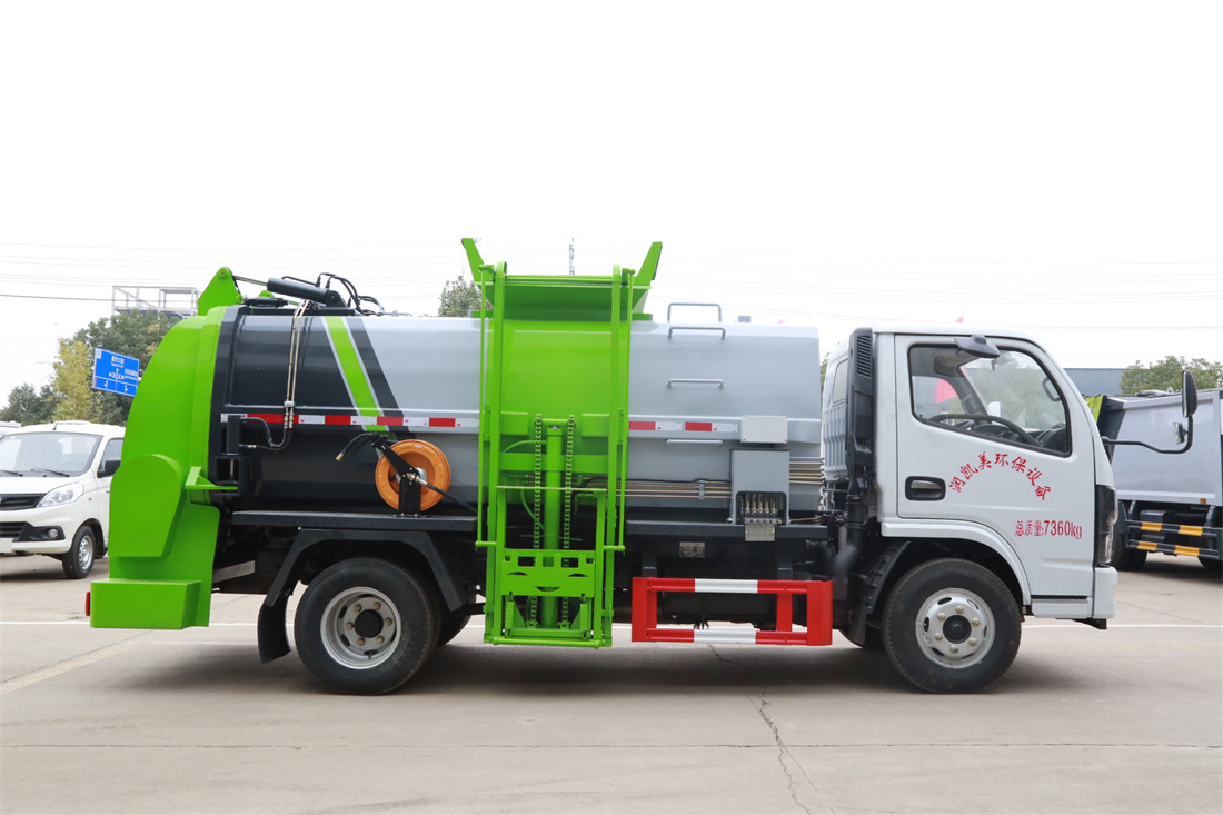 上裝配置:罐體容積6m3,配備120L/240L掛桶提升翻轉(zhuǎn)機(jī)構(gòu),液壓系統(tǒng),后蓋液壓鎖緊開啟,罐體可以舉升自卸,尾部帶自流閥;用于運(yùn)輸液態(tài)垃圾,其特點(diǎn)操作簡單,密封性好,無泄漏,無異味;可選裝固液分離功能,推板擠壓功能,常用于餐館的垃圾轉(zhuǎn)運(yùn)處理。
