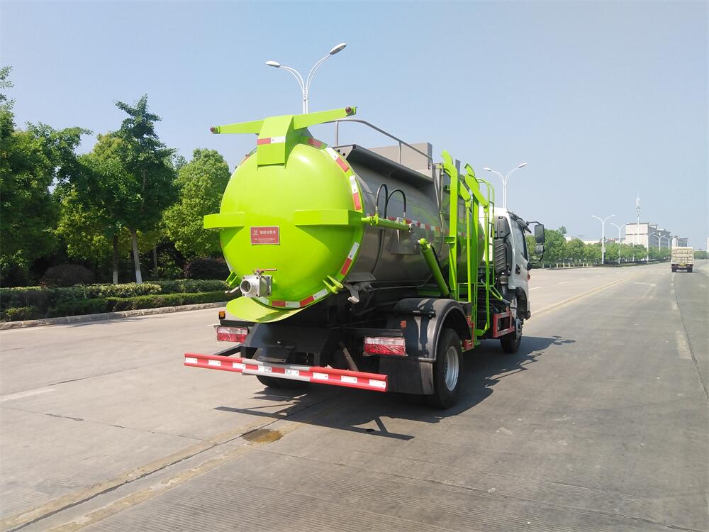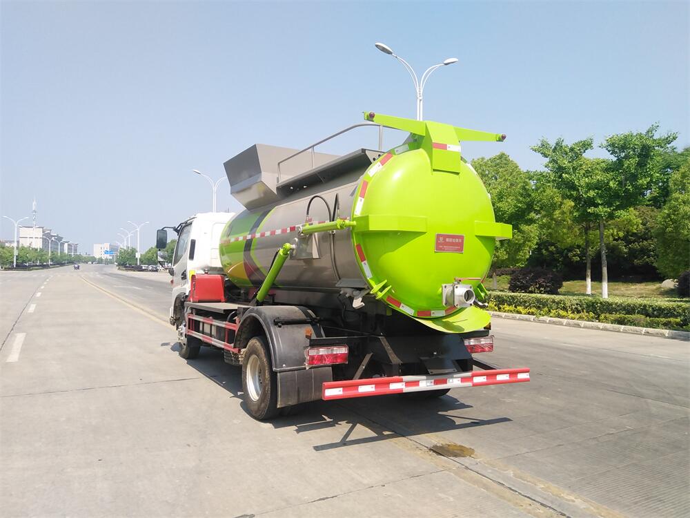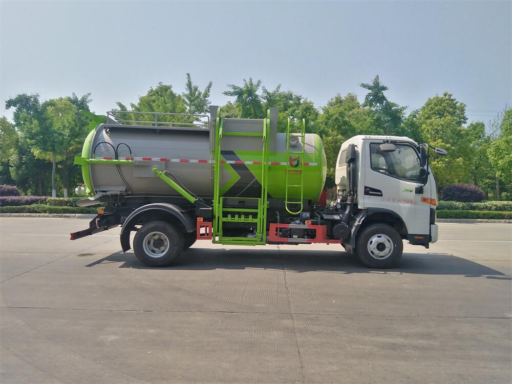 上裝配置:罐體容積8m3,配備120L/240L掛桶提升翻轉機構,液壓系統,后蓋液壓鎖緊開啟,罐體可以舉升自卸,尾部帶自流閥;用于運輸液態垃圾,其特點操作簡單,密封性好,無泄漏,無異味;可選裝固液分離功能,推板擠壓功能,常用于餐館的垃圾轉運處理。
