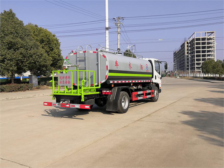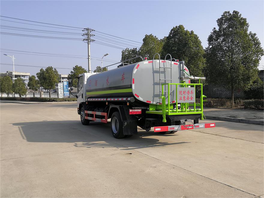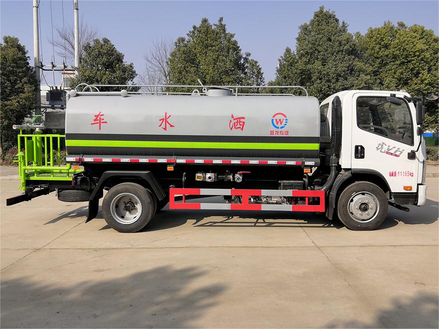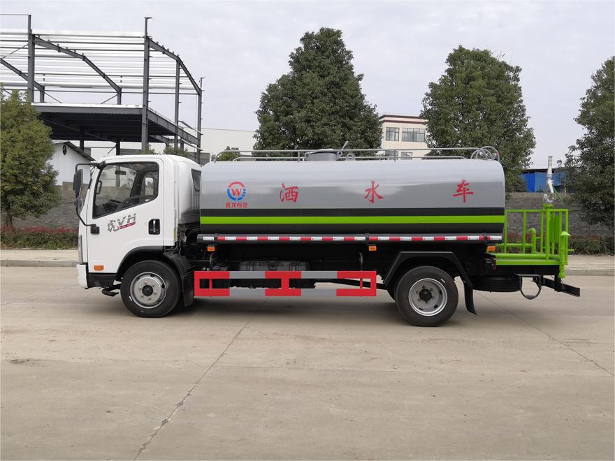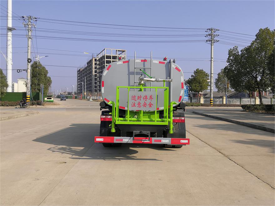 灑水車前裝有鴨形噴嘴或圓頭沖嘴,后面裝有圓柱開灑水噴嘴或蓮蓬頭噴嘴,后部有一工作平臺,裝配有水炮。后部還可裝8個噴嘴(選裝)。