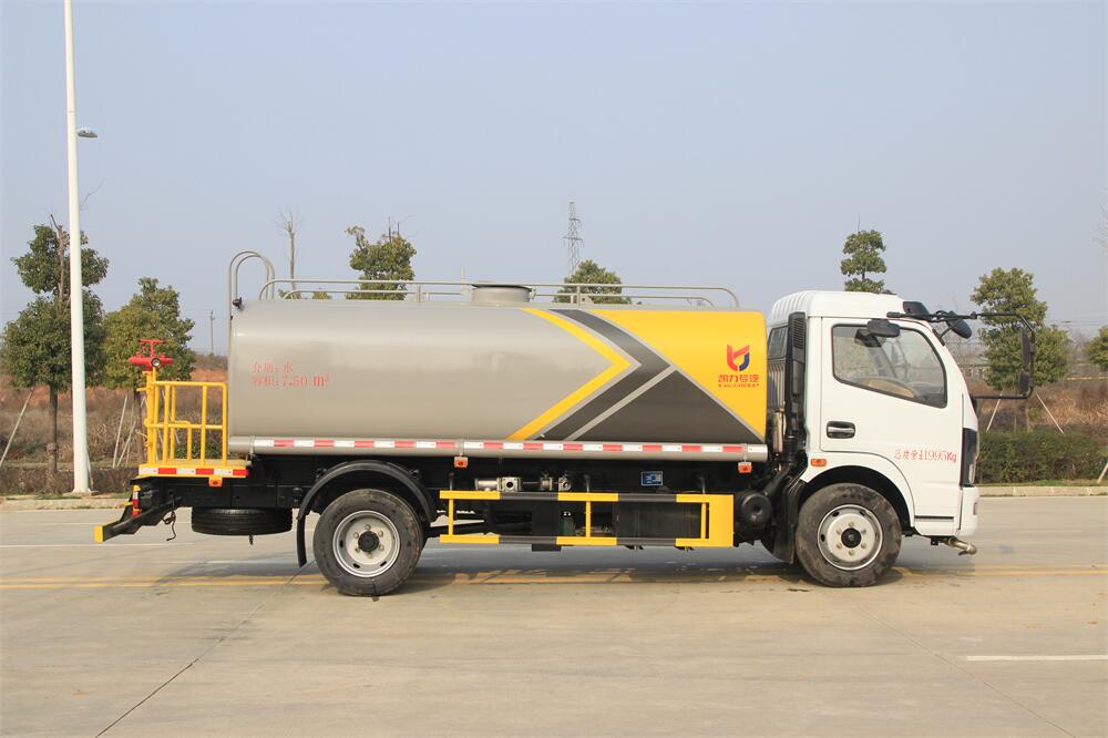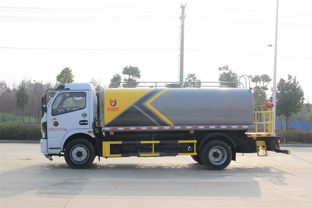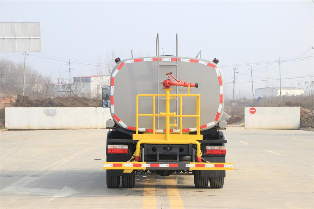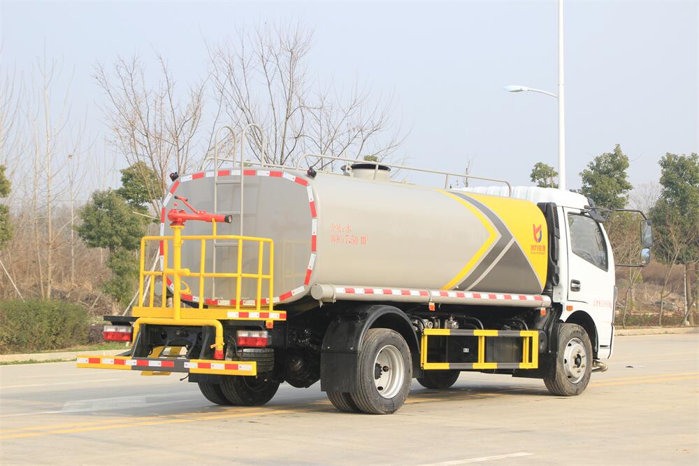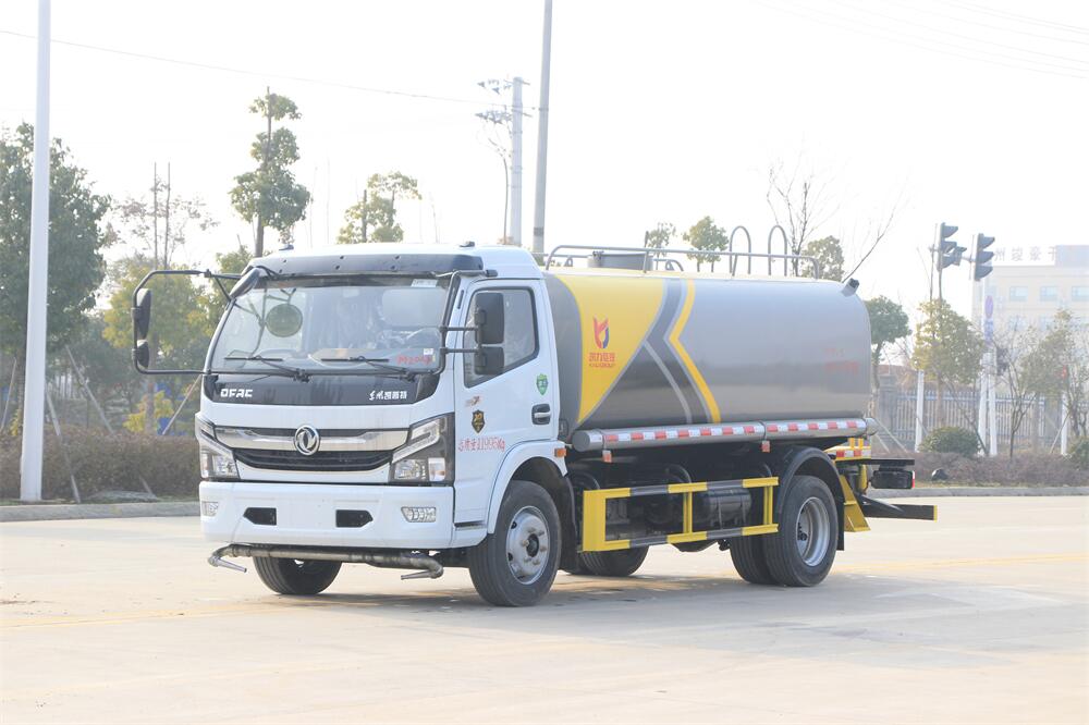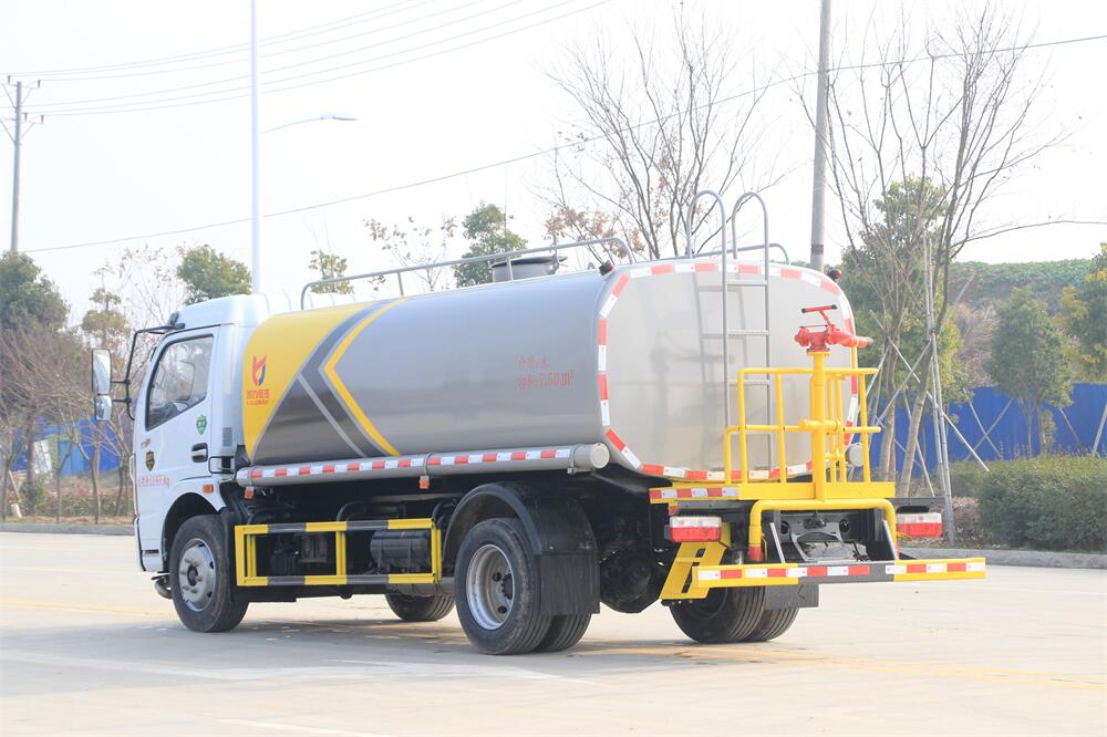 灑水車前裝有鴨形噴嘴或圓頭沖嘴,后面裝有圓柱開灑水噴嘴或蓮蓬頭噴嘴,后部有一工作平臺,裝配有水炮。后部還可裝8個噴嘴(選裝)。