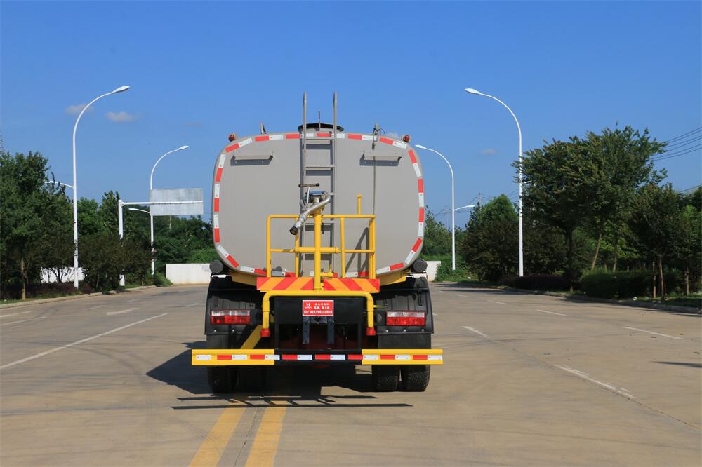 灑水車前裝有鴨形噴嘴或圓頭沖嘴,后面裝有圓柱開灑水噴嘴或蓮蓬頭噴嘴,后部有一工作平臺(tái),裝配有水炮。后部還可裝8個(gè)噴嘴(選裝)。