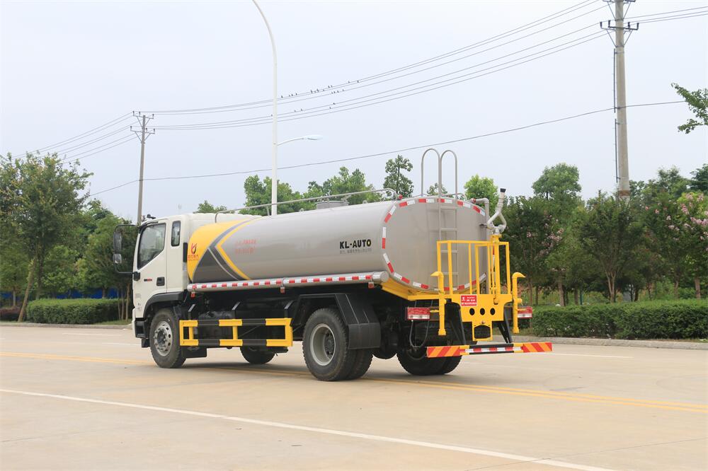 灑水車前裝有鴨形噴嘴或圓頭沖嘴,后面裝有圓柱開灑水噴嘴或蓮蓬頭噴嘴,后部有一工作平臺,裝配有水炮。后部還可裝8個噴嘴(選裝)。