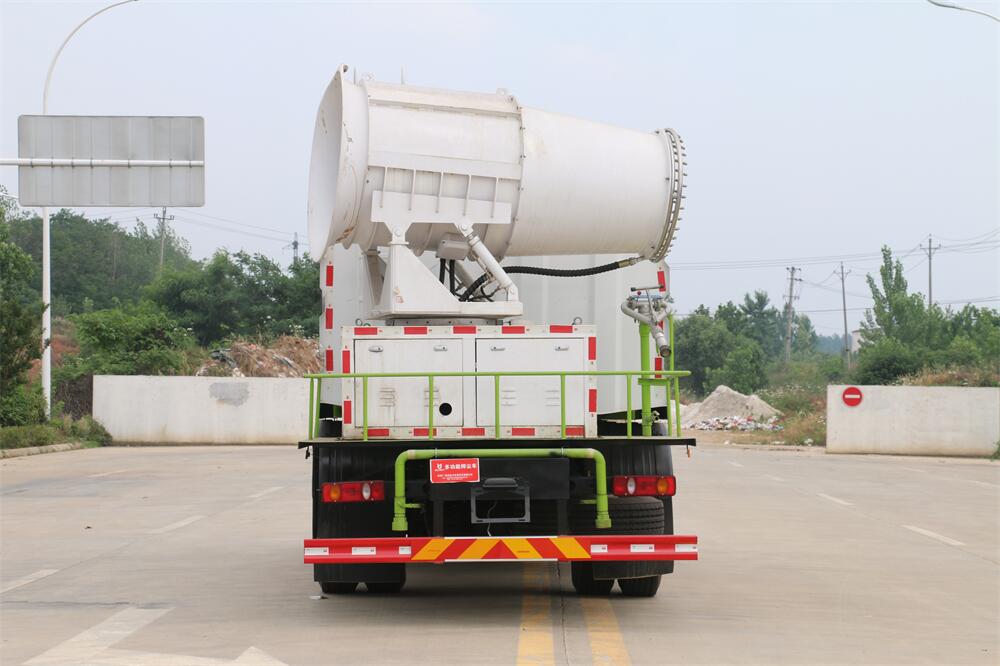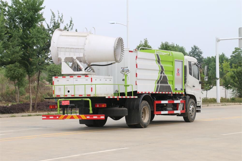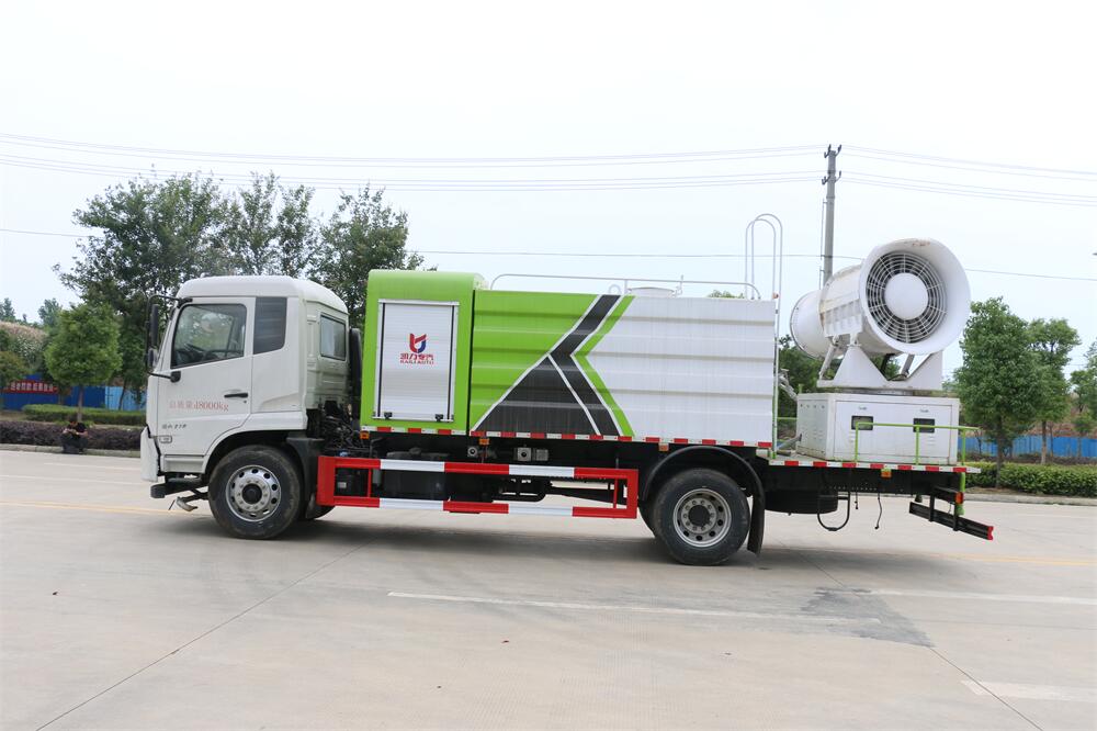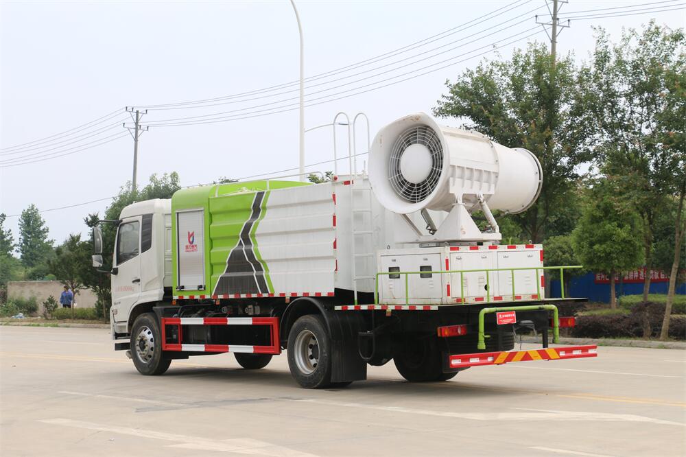上裝配置:罐體容積為 12立方,選配風(fēng)送式霧炮機(jī)組射程30米、40米、50米、60米、80米、100米、120米霧炮,罐體鋼板為4mm碳鋼Q235材質(zhì),罐內(nèi)隔板具有防波作用,以減輕汽車行駛時(shí)罐體液體沖擊,罐體及整車外形尺寸按照公告。帶大功率專用灑水泵,泵可自吸自排,整車前沖、后灑、側(cè)噴、帶65消防接口,后平臺(tái)配CLW-50、CLW-60、CLW-80、CLW-100、CLW-120型風(fēng)送式霧炮機(jī)組;罐體前封頭配大功率柴油發(fā)電機(jī)組;前封頭帶水位計(jì),后平臺(tái)主管路帶1寸澆花接口,后爬梯。帶兩根輸水管及陰陽端。罐體顏色:銀/灰/綠,罐體兩側(cè)噴“多功能抑塵車”字樣,貼反光標(biāo)示。