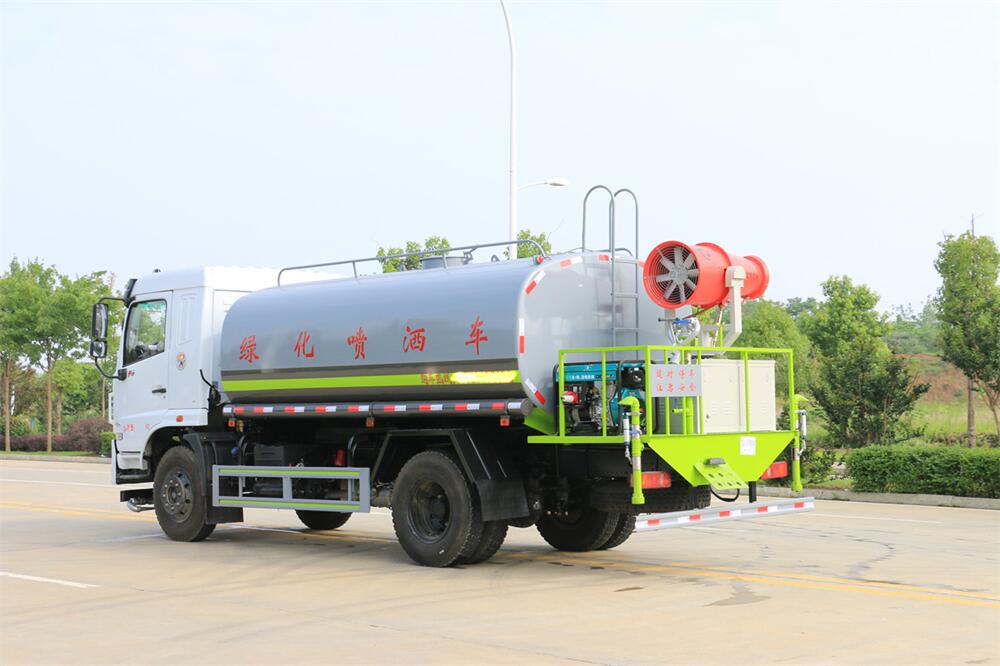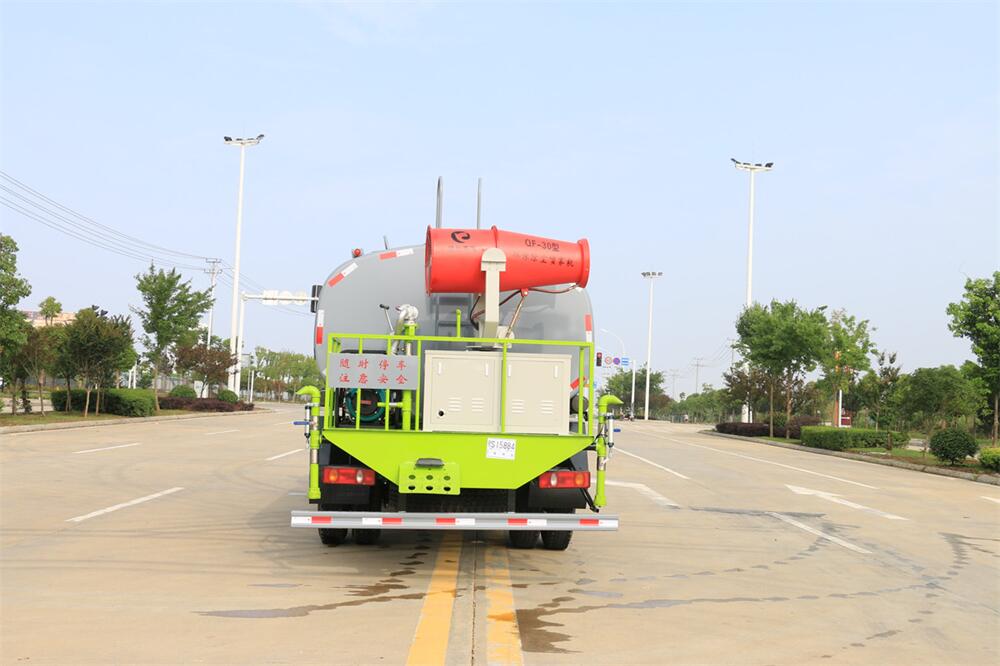 主要由發動機帶動變速箱,變速箱上安裝的取力器帶動灑水泵,灑水泵產生動力,將罐體內部的液體通過管網噴灑出去。工作范圍:自吸高度:≥7m,灑水寬度:≥14m,**大射程:≥28m;可調節成柱狀,射程≥28m;也可調節成霧狀,射程≥5m。