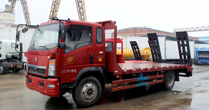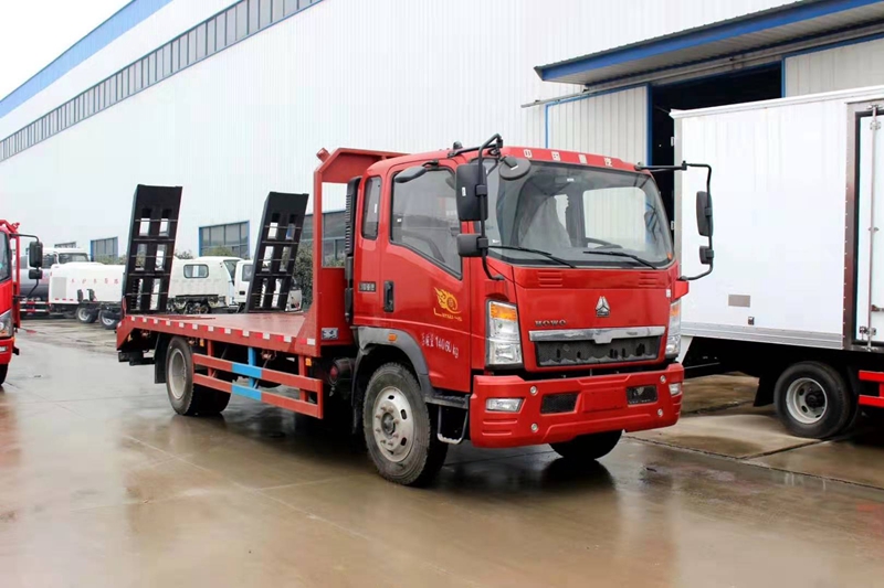 上裝采用五毫米花紋鋼板,100*100方鋼做橫梁,加強雙簧爬梯,可拉12噸以下挖機。