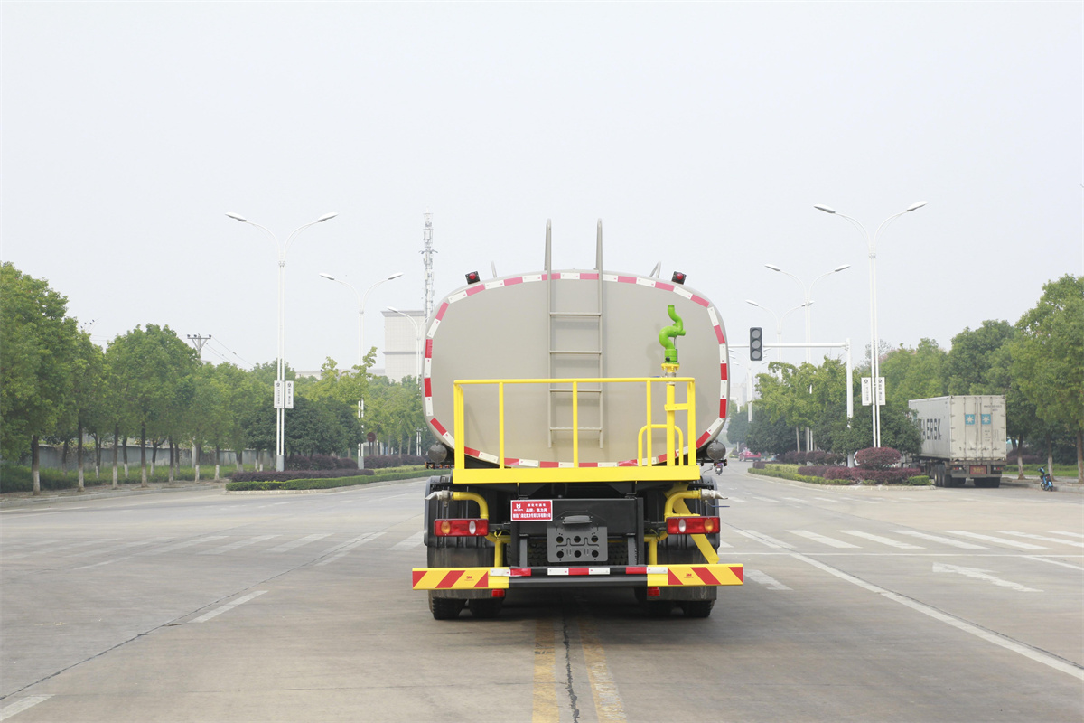 灑水車前裝有鴨形噴嘴或圓頭沖嘴,后面裝有圓柱開灑水噴嘴或蓮蓬頭噴嘴,后部有一工作平臺,裝配有水炮。后部還可裝8個噴嘴(選裝)。
