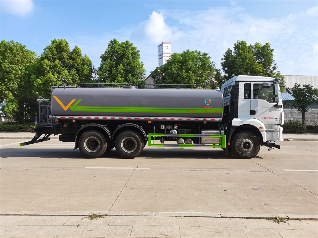 主要由發動機帶動變速箱,變速箱上安裝的取力器帶動灑水泵,灑水泵產生動力,將罐體內部的液體通過管網噴灑出去。工作范圍:自吸高度:≥7m,灑水寬度:≥14m,**大射程:≥28m;可調節成柱狀,射程≥28m;也可調節成霧狀,射程≥5m。