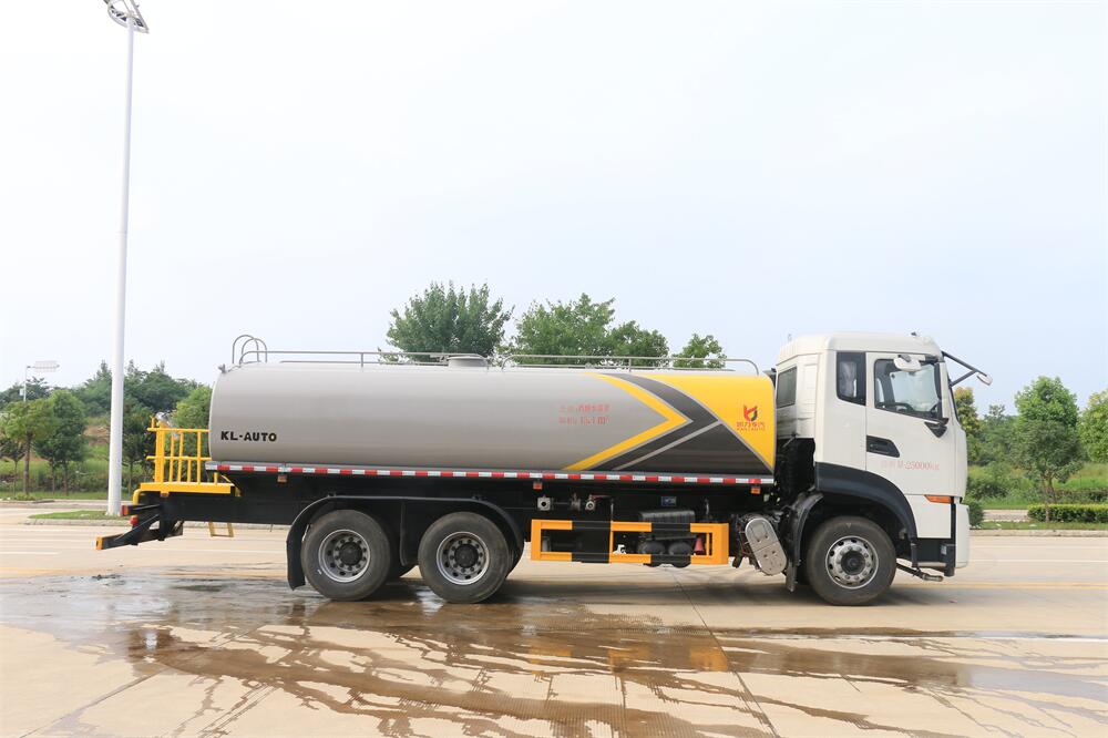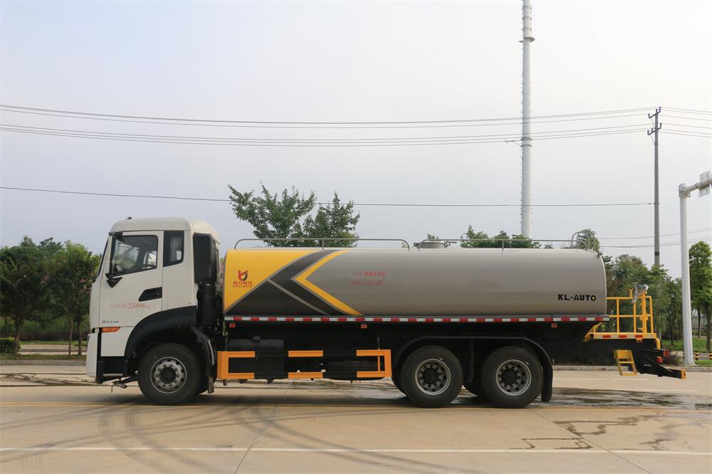 灑水車前裝有鴨形噴嘴或圓頭沖嘴,后面裝有圓柱開灑水噴嘴或蓮蓬頭噴嘴,后部有一工作平臺,裝配有水炮。后部還可裝8個噴嘴(選裝)。
